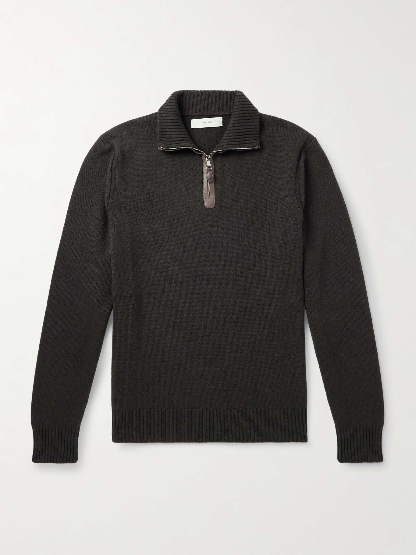 PURDEY Leather-Trimmed Cashmere Half-Zip Sweater