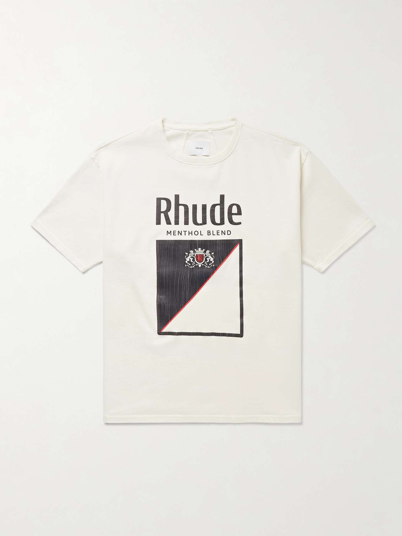 Rhude's T-shirt is printed with a cracked logo that resembles a pack of cigarettes. It's cut for a roomy fit from cotton-jersey and has dropped shoulder seams.