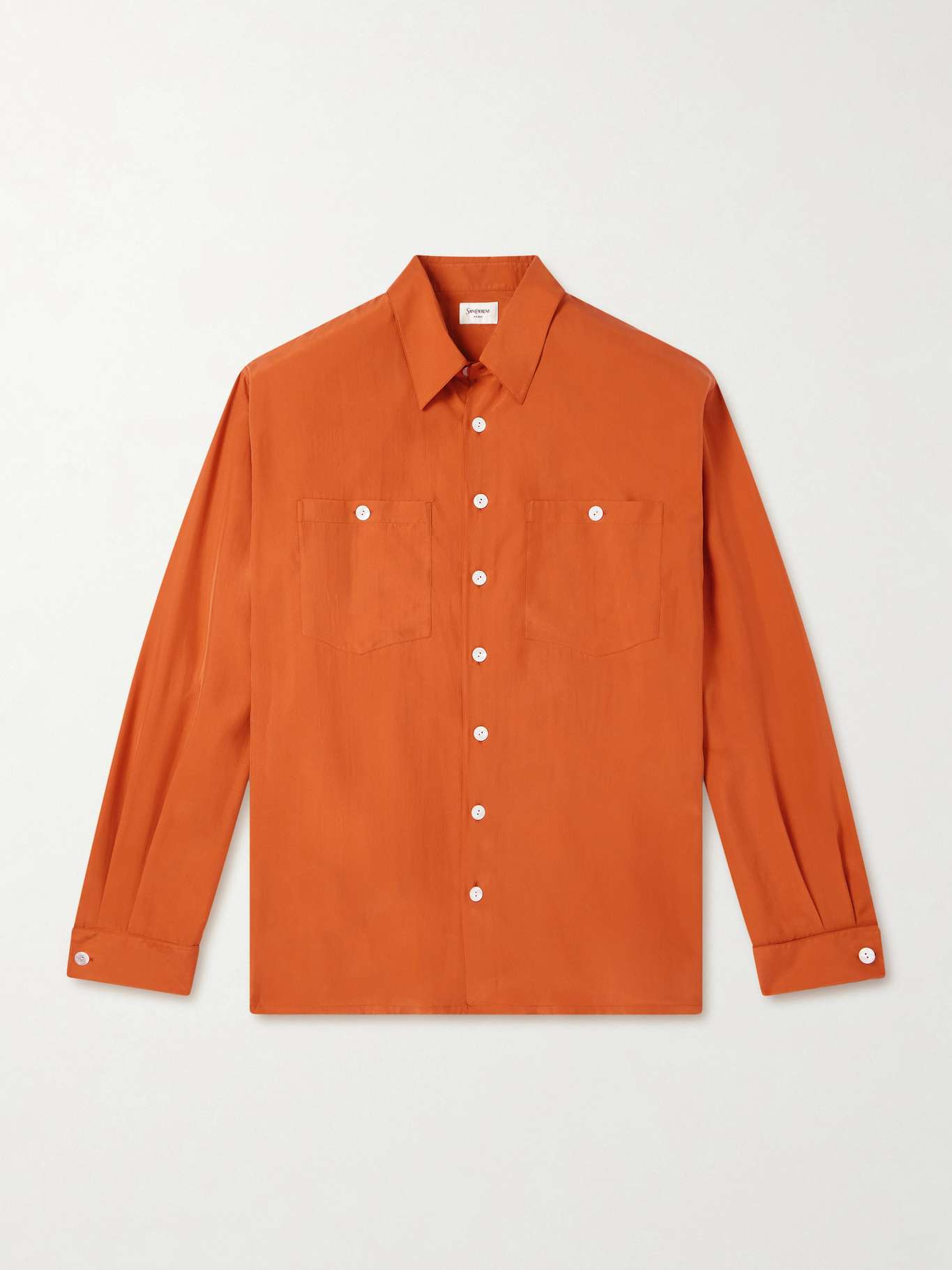 Cut in a laid-back shape, SAINT LAURENT's shirt is made from lightweight silk-habotai and detailed with a pointed collar, chest pockets and contrasting buttons. Offset the vibrant orange tone with tailoring or relaxed denim.