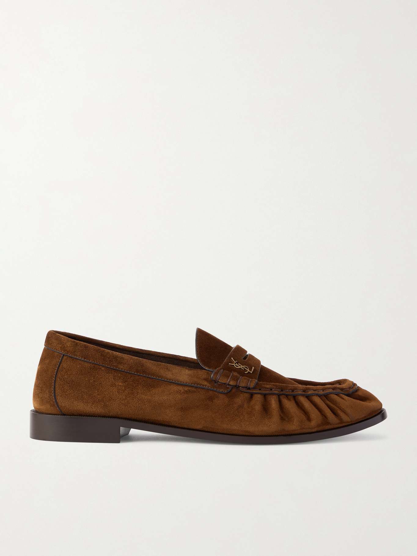 SAINT LAURENT Le Loafer Monogram Logo-Appliquéd Suede Penny Loafers