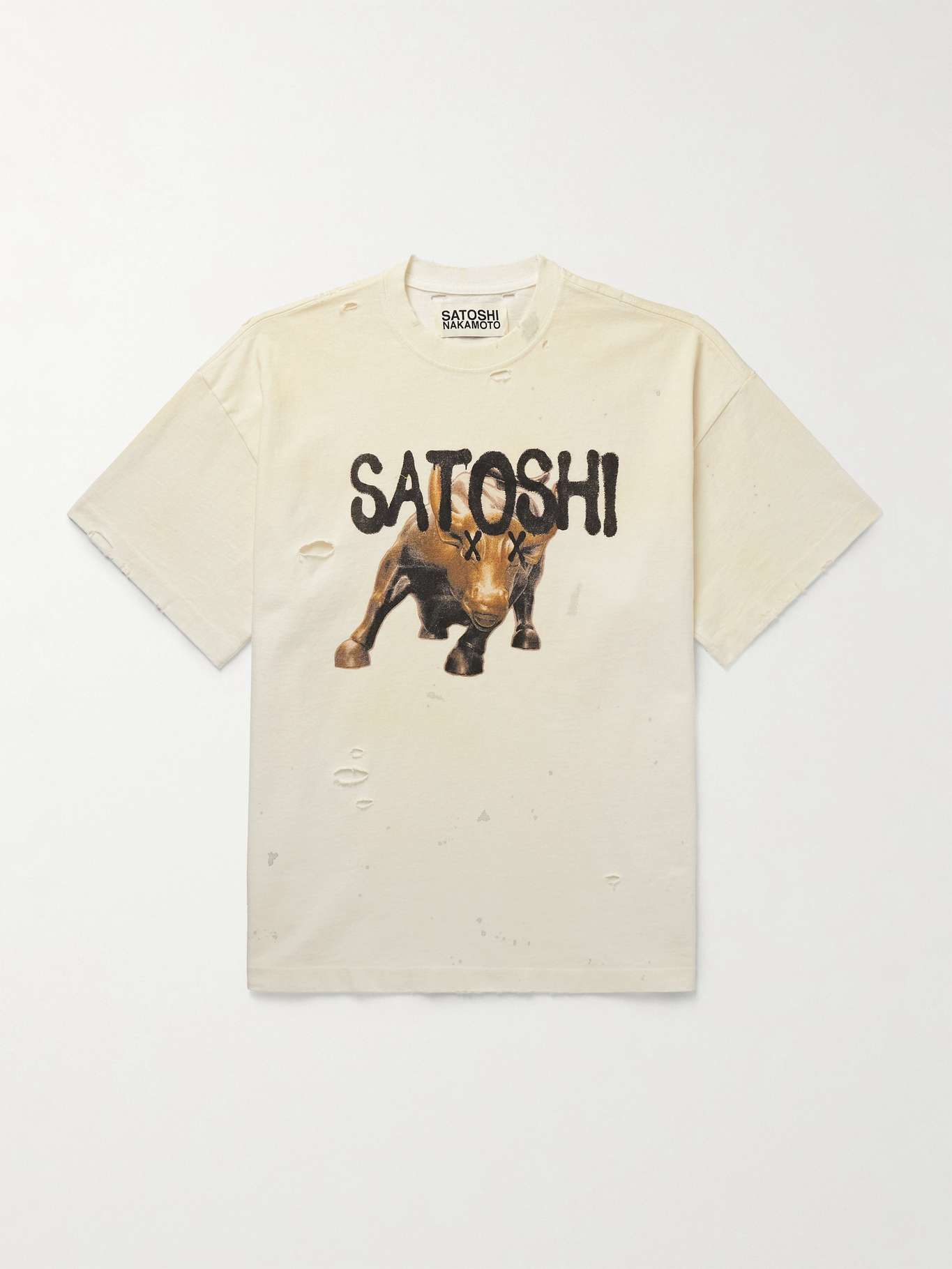 SATOSHI NAKAMOTO Wall Street Distressed Logo-Print Cotton-Jersey T-Shirt
