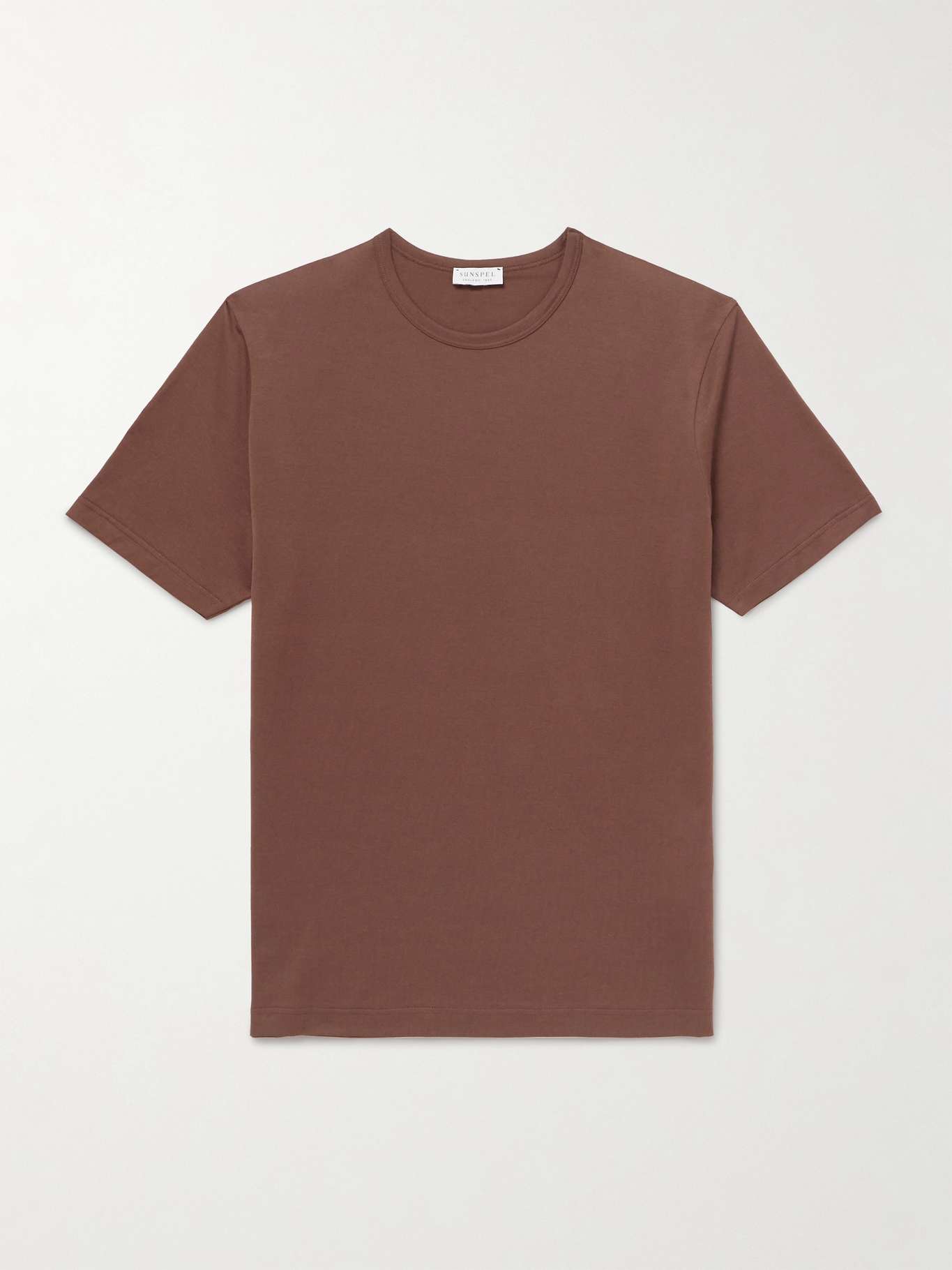 Sunspel's expertise in T-shirts dates back to the early 20th century when the military adopted short-sleeved undershirts as part of its uniform. This brown style has been made in England from fine long-staple cotton that's hand-picked and combed to ensure its purity, then twisted to create a durable jersey that will stand the test of time.