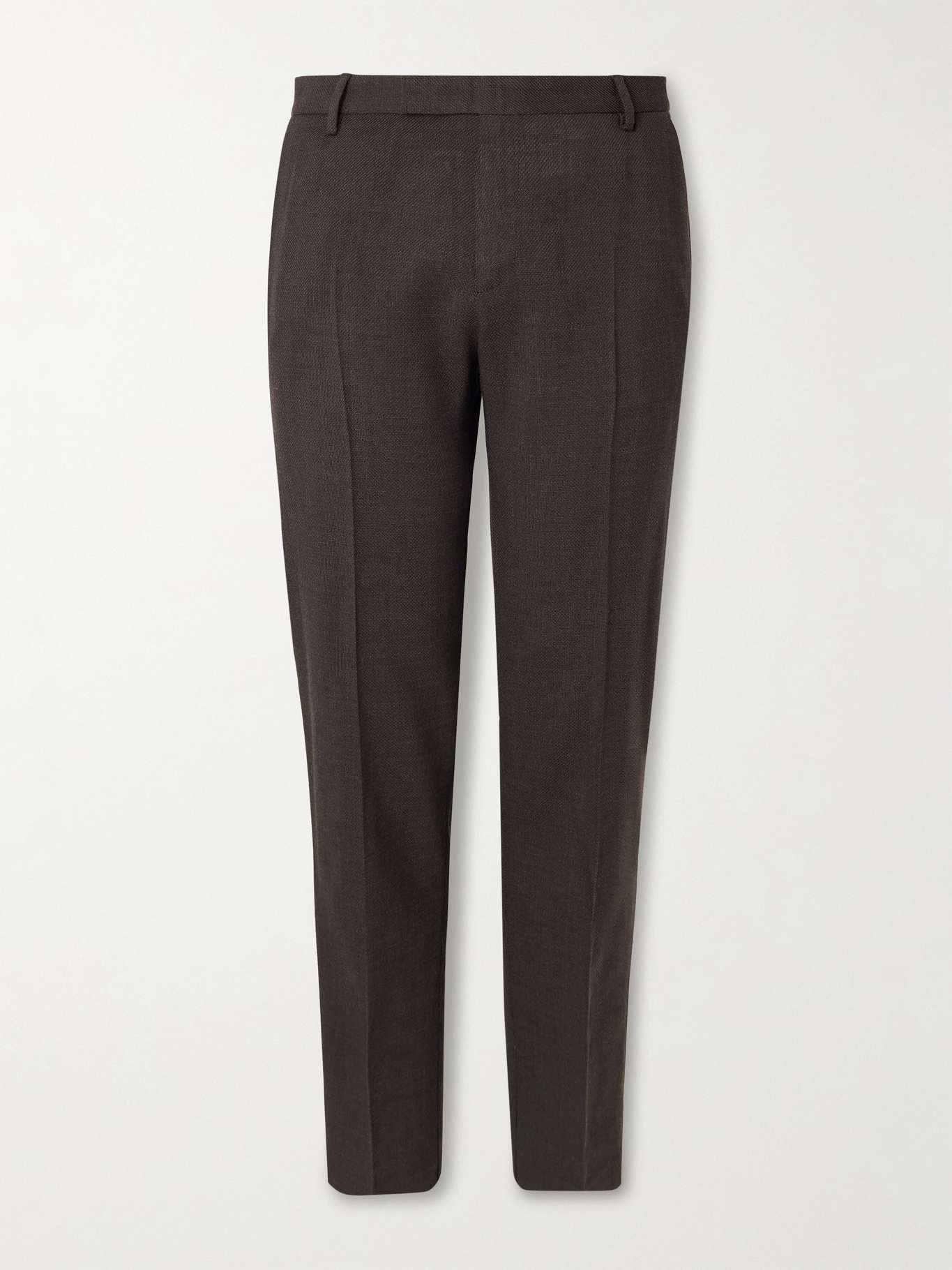 Sunspel's suit trousers are made from a textured wool-blend, supplied by an Italian mill. They're tailored for a straight-leg fit and have front pressed creases to help define the shape. Wear them with the matching jacket.