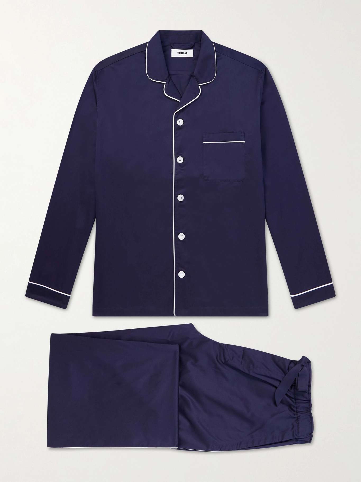 TEKLA's 'Chelsea' pyjama set is made from cotton-satin for a smooth, lightly lustrous finish. It's cut for a roomy fit and finished with contrast piping.