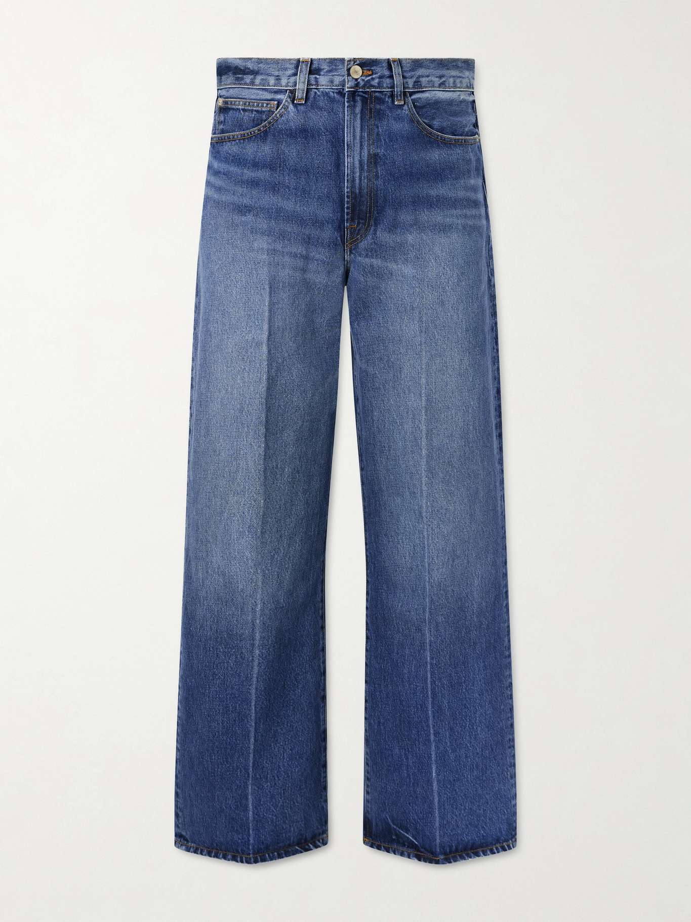 Founded in Los Angeles, The Elder Statesman approaches everyday pieces with a small-batch mindset and a playful sensibility. These five-pocket jeans are cut from organic denim in a mid-rise, wide-leg fit and are vintage-washed with pressed creases.