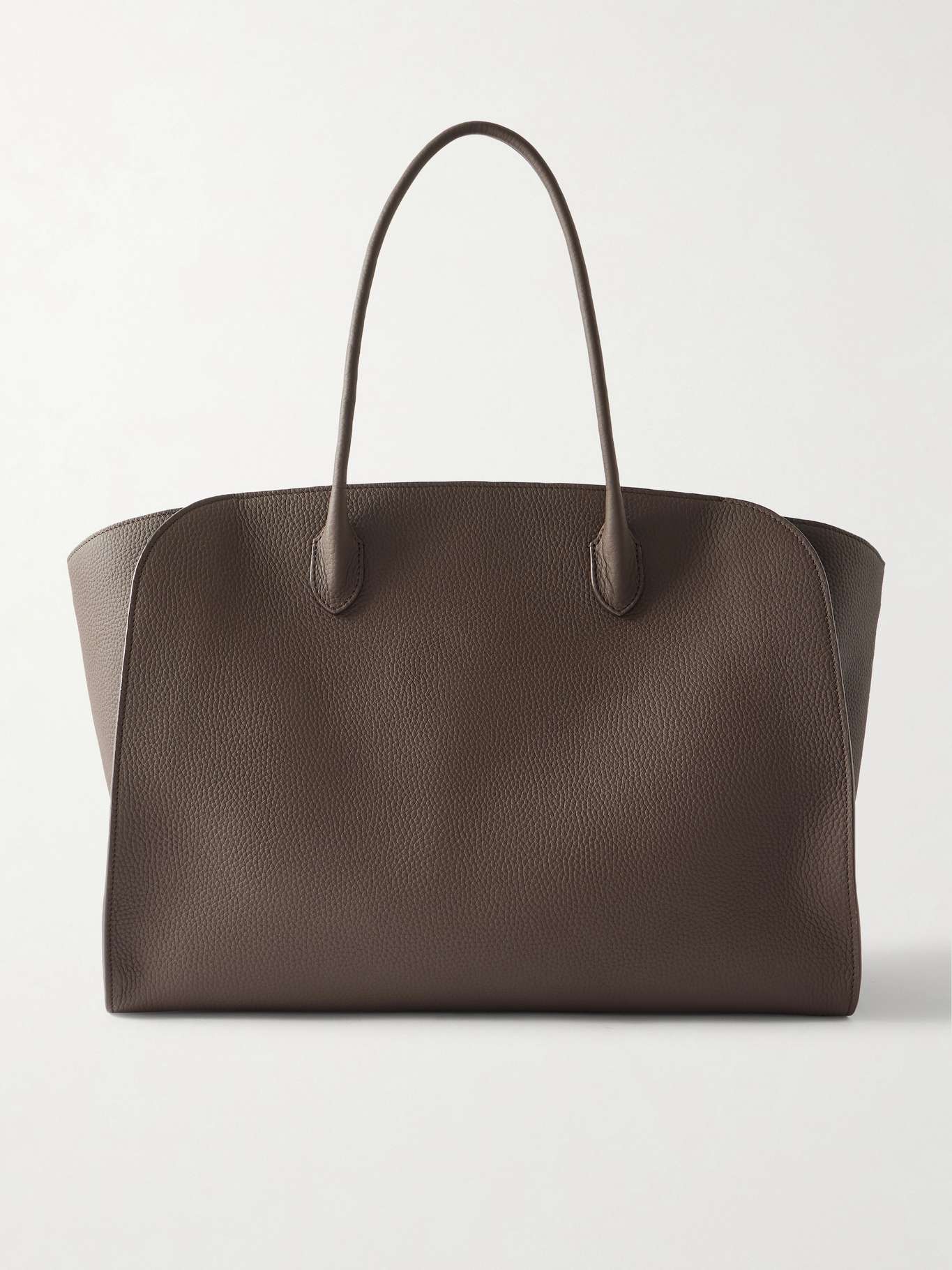 The Row's 'Marlo 17' structured tote bag features clean lines, extended sides and rounded handles. It's been made in France from brown leather and has an internal zipped pocket to tuck your cards and phone.