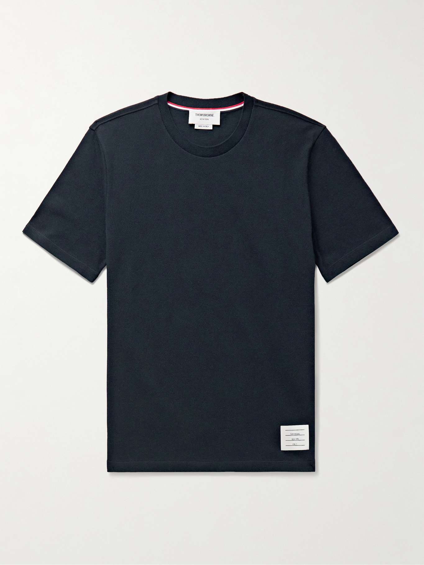 THOM BROWNE Logo-Appliquéd Striped Cotton-Piqué T-Shirt