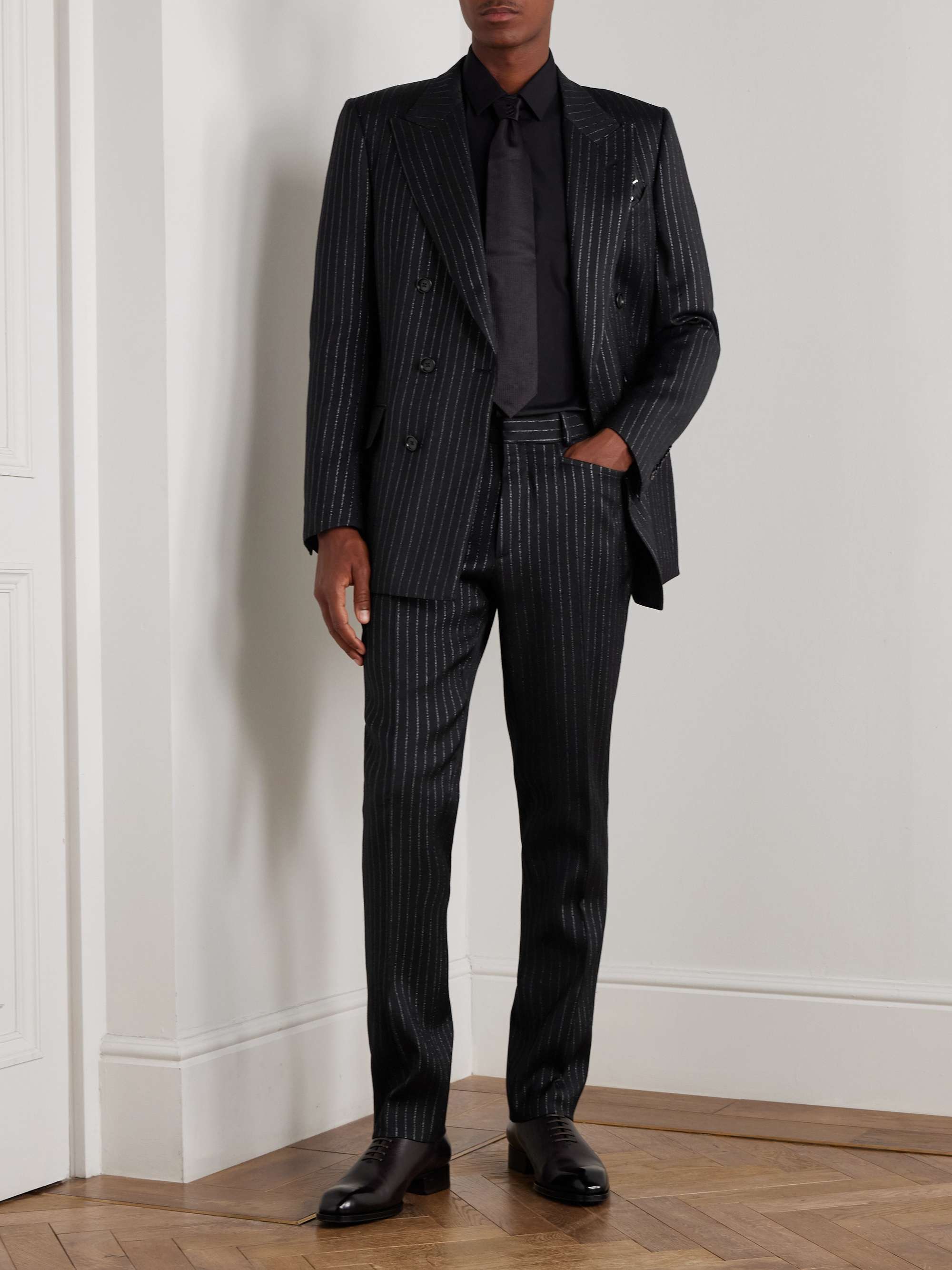 TOM FORD Dyllan Double-Breasted Striped Metallic Wool and Silk-Blend Suit Jacket
