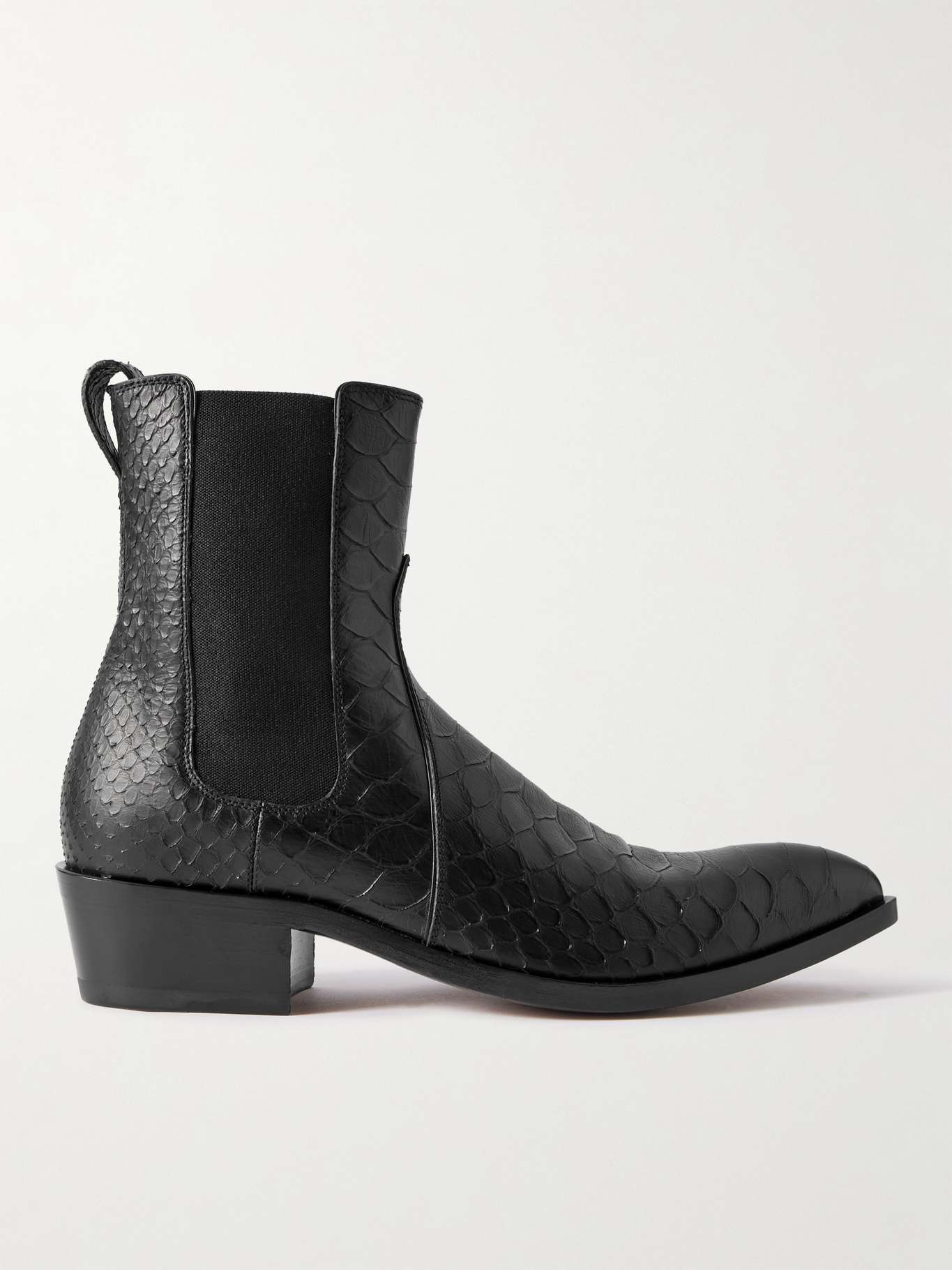 TOM FORD's Chelsea boots are made from supple python-effect leather. Set on chunky Cuban heels, they have pointed toes that lift at the front. Thanks to the elasticated panels, they're easy to take on and off.