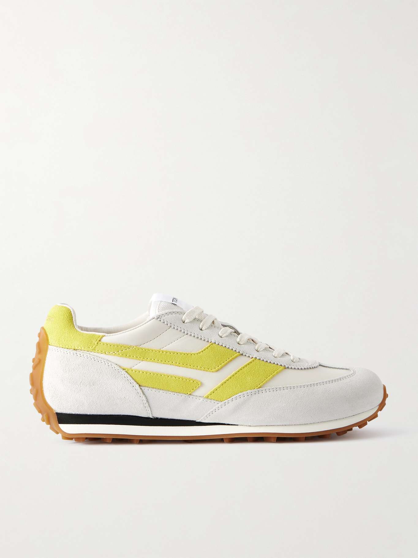 - Light-grey and yellow suede (Calf), white mesh, off-white leather