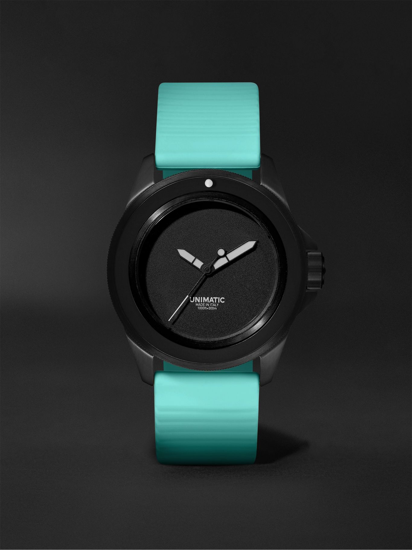 UNIMATIC Model One Almost Tiffany Limited Edition Automatic 40mm Blackened Stainless Steel and TPU Watch, Ref. No. U1S-MN-BLUE