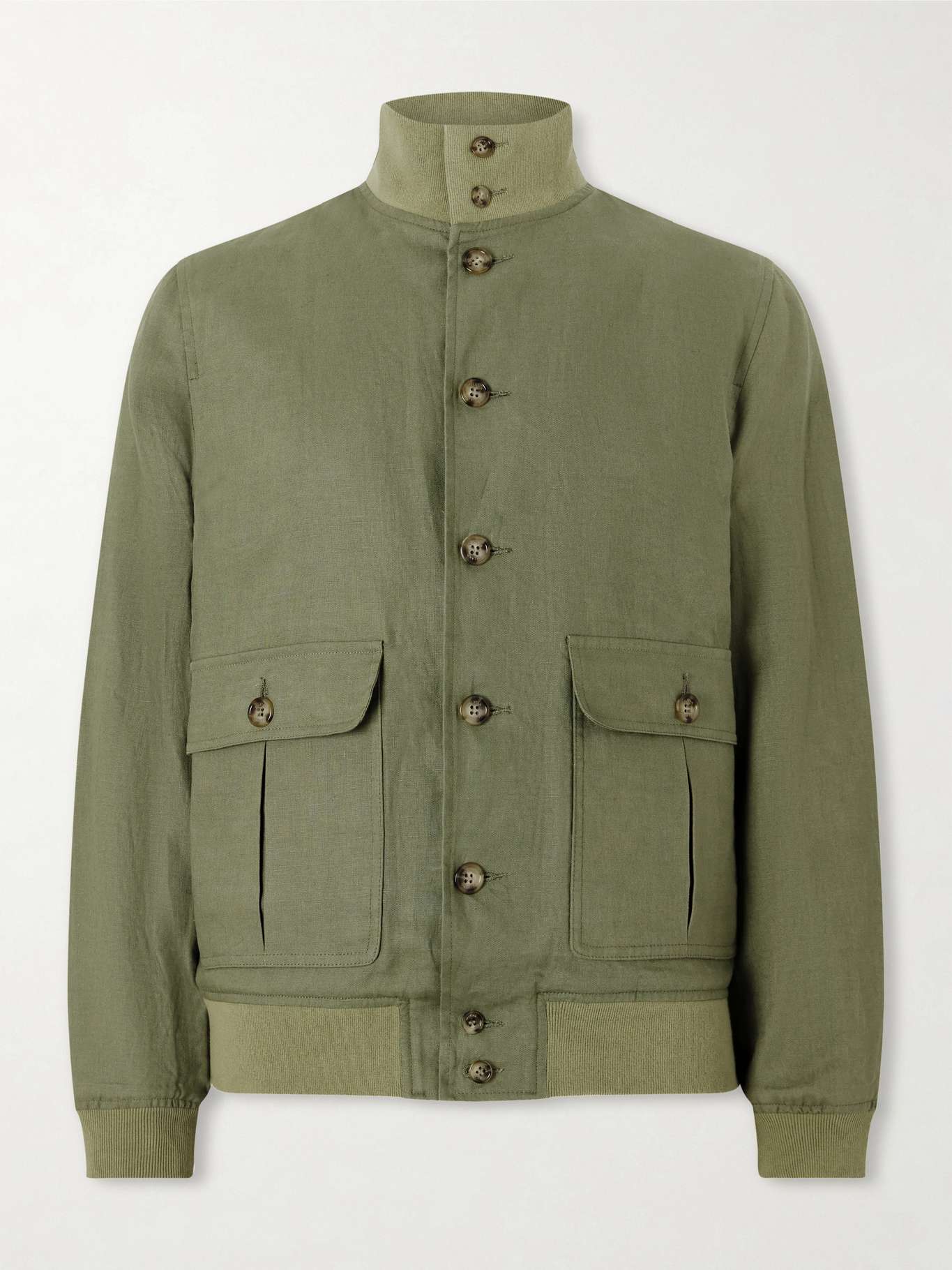 Valstar debuted its 'Valstarino' jacket in 1935 and reimagines it in a range of different fabrics every season. Lightweight and breathable, this linen version features all the hallmarks of the classic, including a funnel neck, ribbed trims and button fastenings.