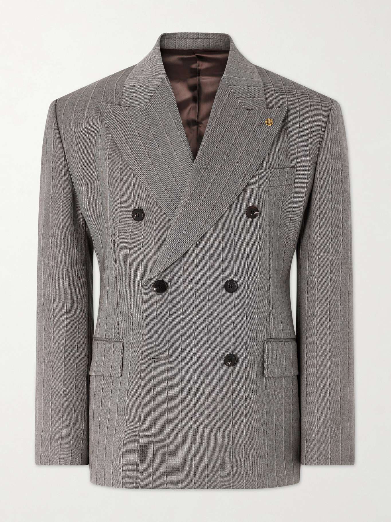 VERSACE Double-Breasted Pinstriped Wool-Twill Blazer