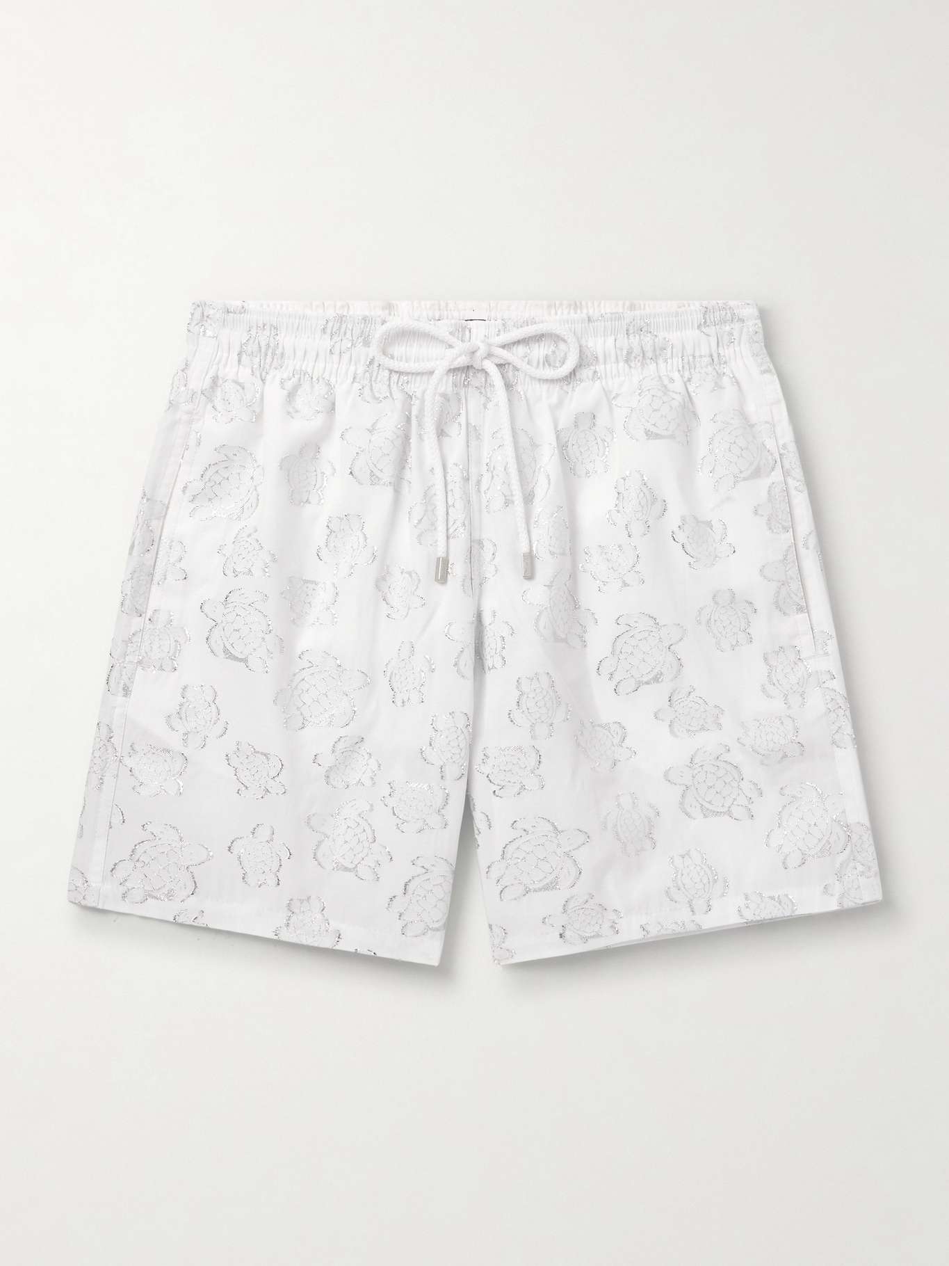 Vilebrequin's 'Moopea' swim shorts are jacquard-woven with its iconic 'Ronde Des Tortues' motif in metallic, silver-tone threads. They're made from a lightweight and breathable cloth that's blended with plenty of cotton and cut with loose, straight legs that hit around mid-thigh.