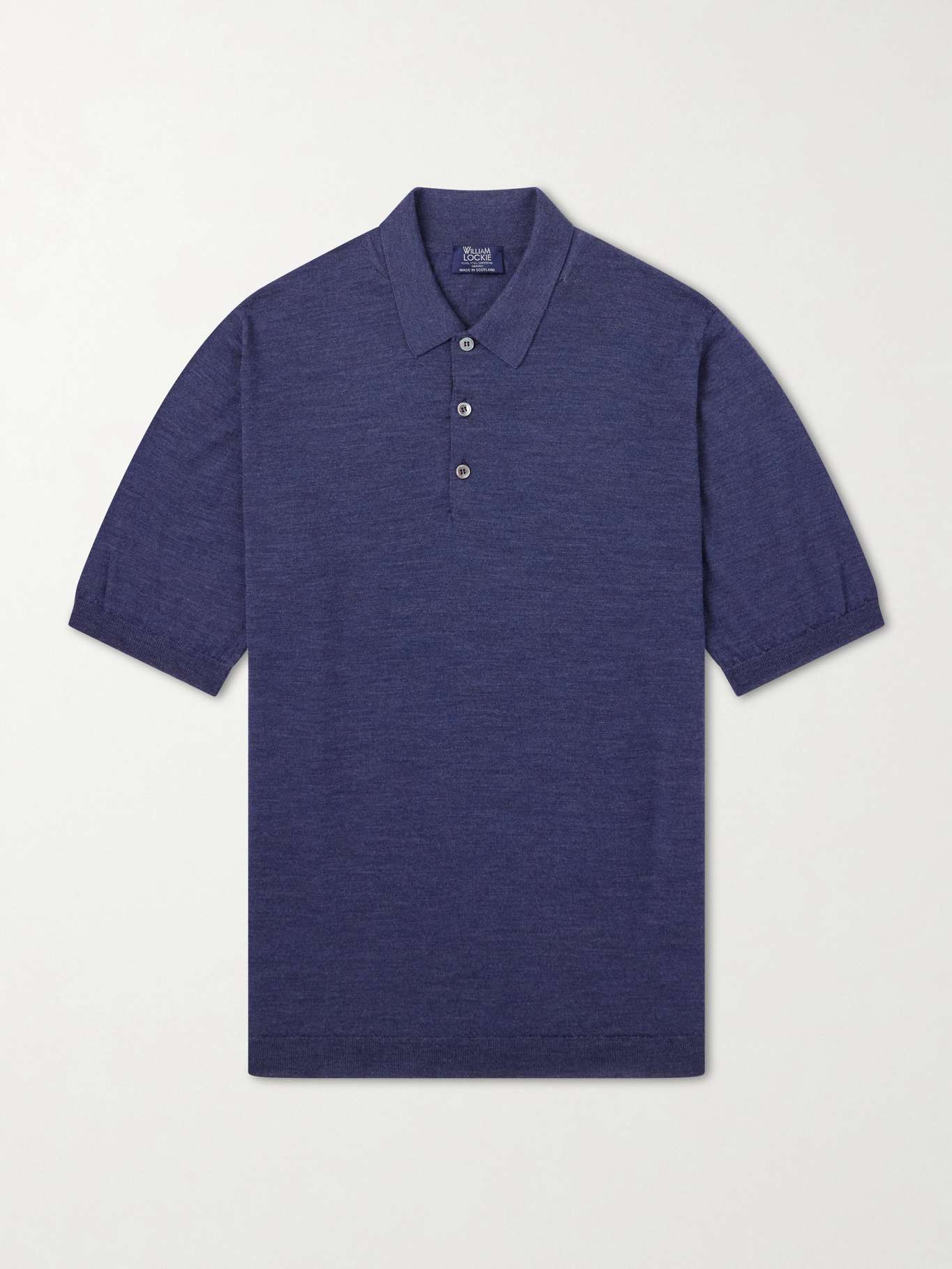 William Lockie’s polo shirt is knitted from virgin wool, chosen for its fine, soft handle. Designed with a neat collar and buttoned placket, it’s finished with ribbed trims that lend subtle structure, balancing the lightweight feel with a clean, composed shape.
