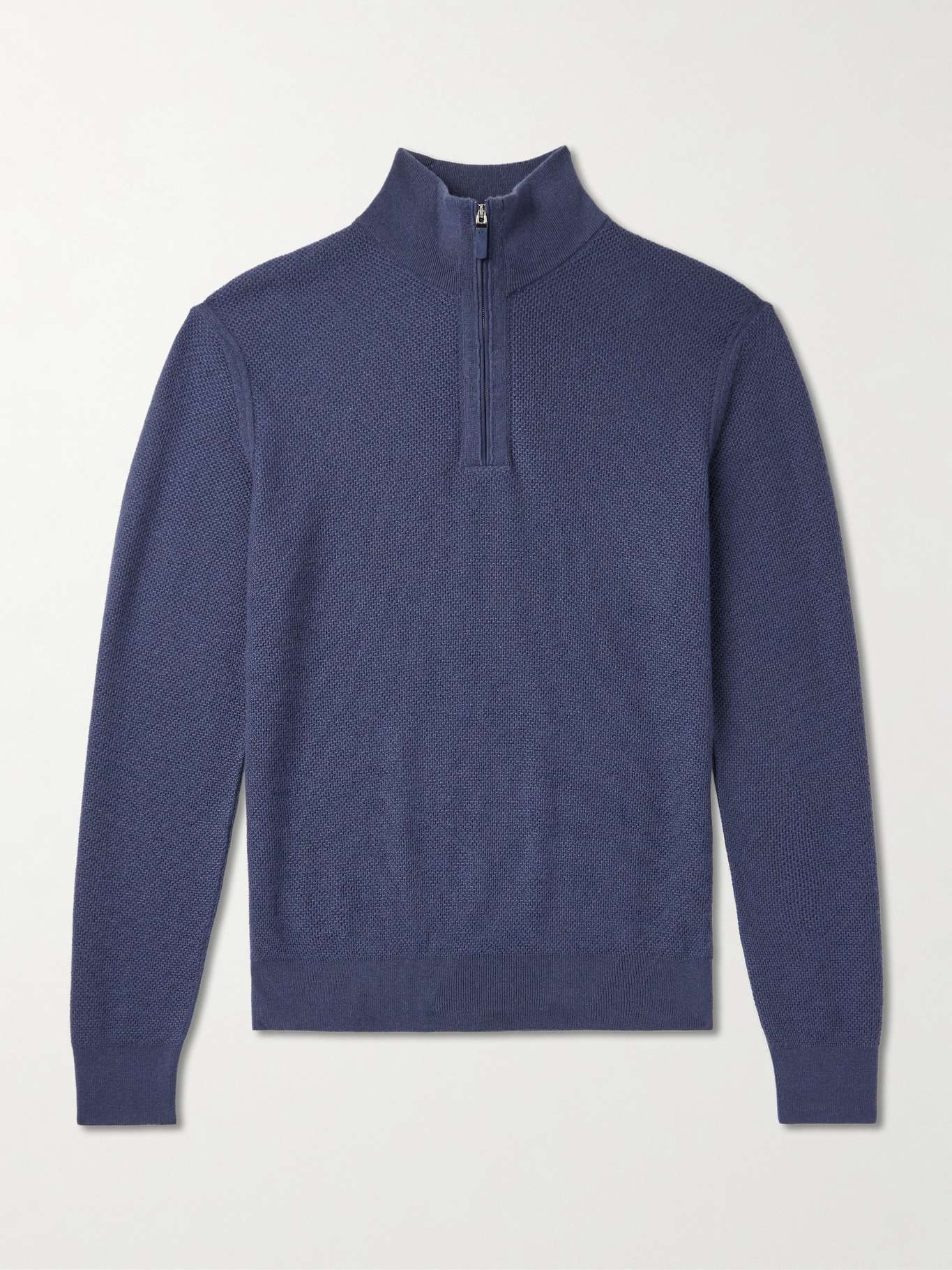 ZEGNA uses fine natural resources for its fully traceable 'Oasi Cashmere' collection - each piece comes with a QR code tracking its journey from fabric sourcing to final production. This sweater has been knitted in Italy for a slightly loose fit and detailed with soft leather along the half-zip placket.