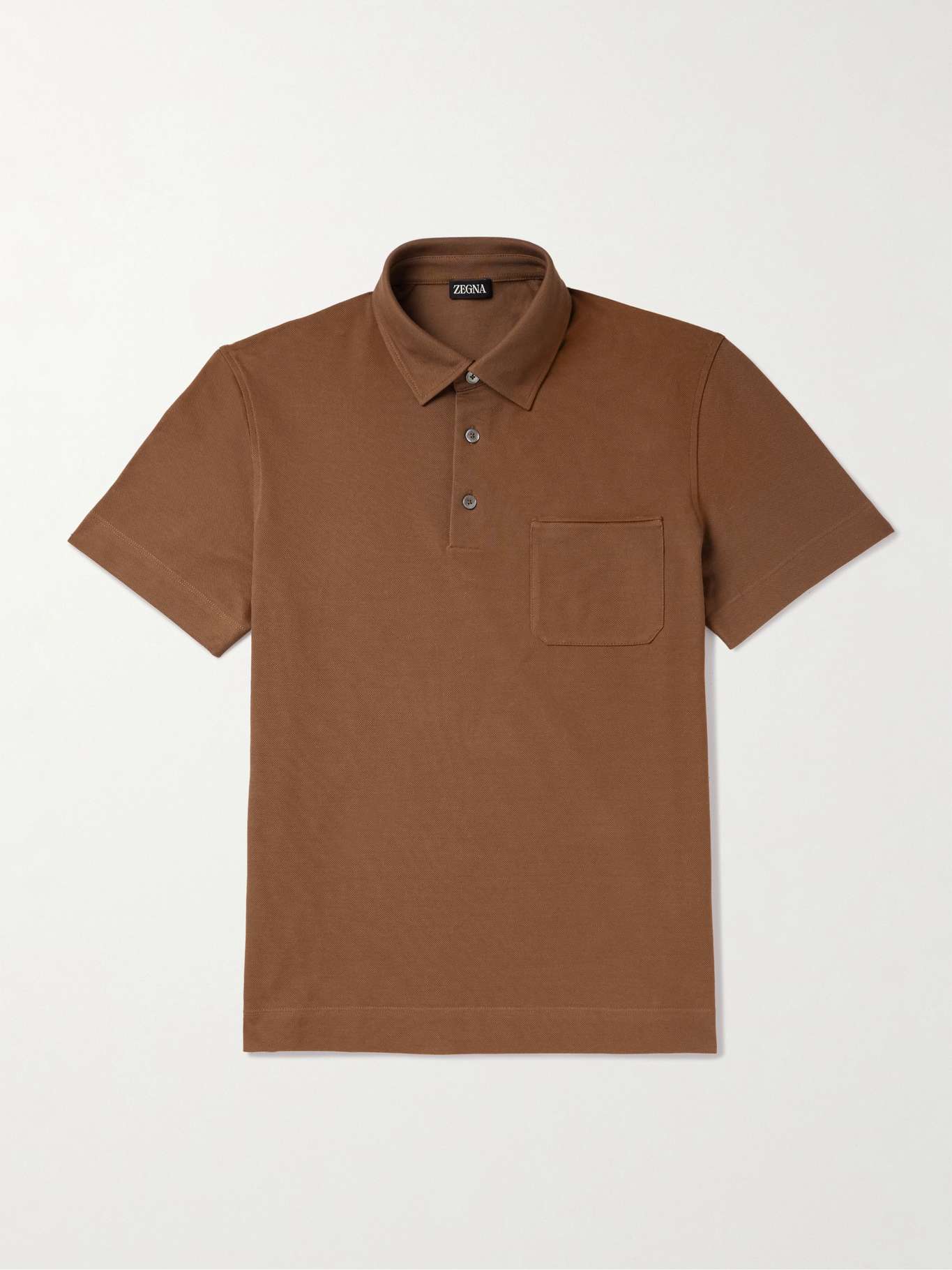 ZEGNA Leather-Trimmed Cotton-Piqué Polo Shirt