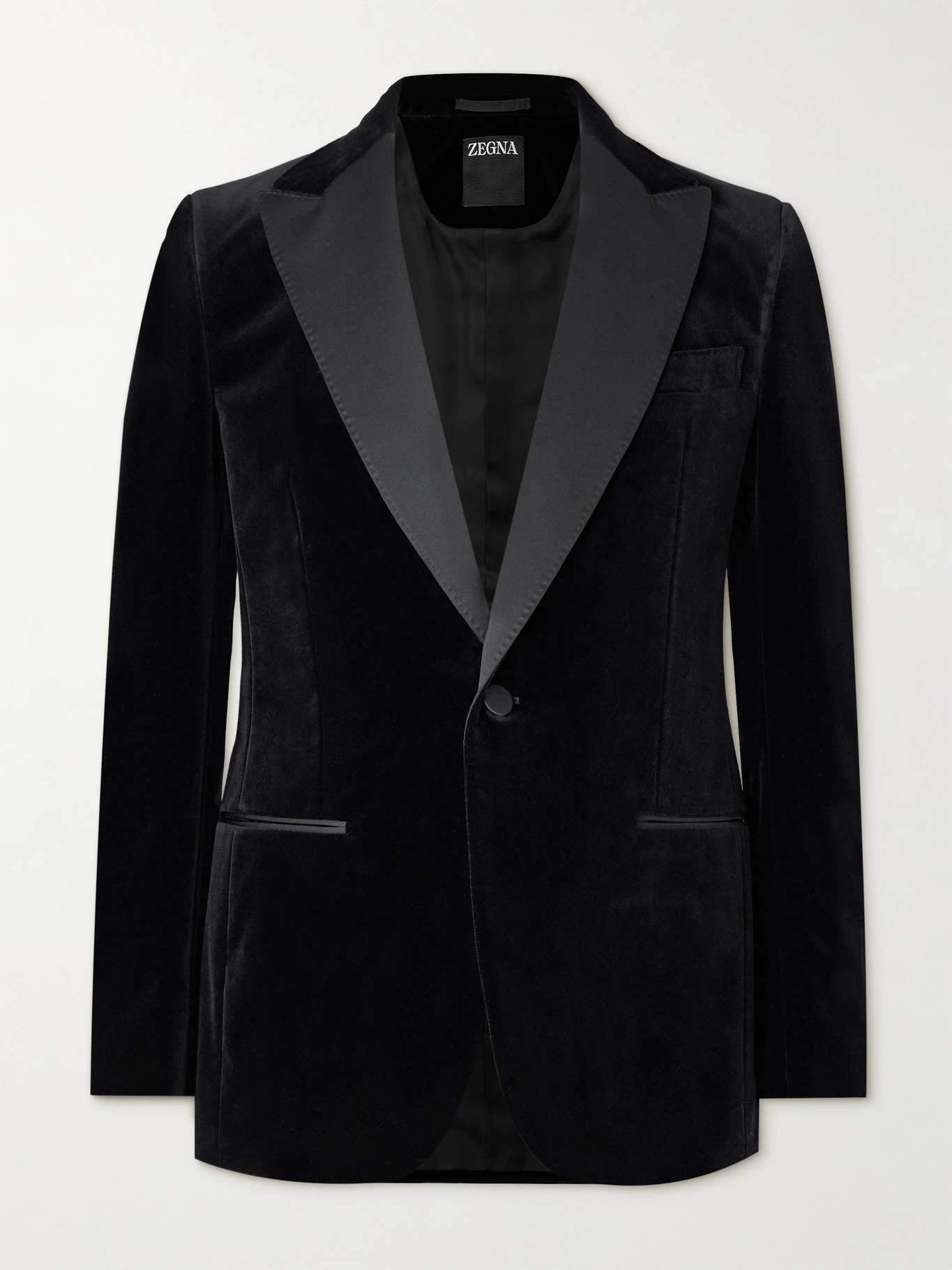 ZEGNA's tuxedo jacket is an elegant choice to celebrate a milestone. Fully lined for structure, it's tailored from soft cotton-velvet and trimmed with dark-grey satin along the peak lapels. Wear yours with slim trousers and patent loafers.