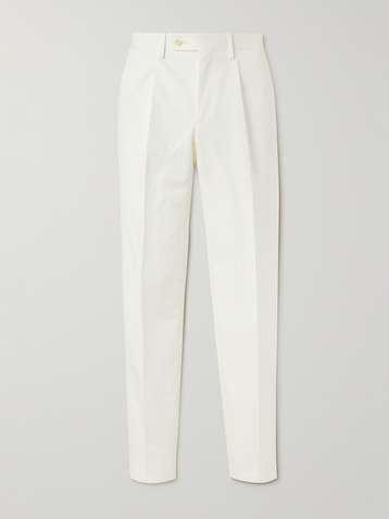 Straight-Leg Pleated Cotton and Linen-Blend Trousers