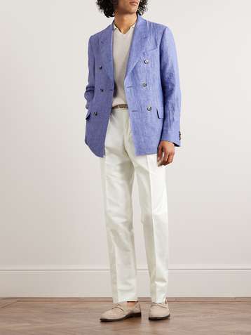 Slim-Fit Double-Breasted Linen and Wool-Blend Blazer