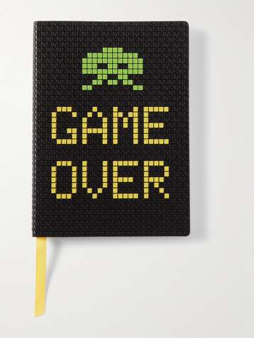 + Space Invaders Printed Stepan Coated-Canvas and Leather Notebook