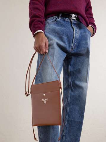 Shopper Logo-Debossed Crinkled-Leather Phone Pouch