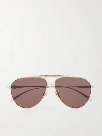 Bamboo Aviator-Style Gold-Tone Sunglasses