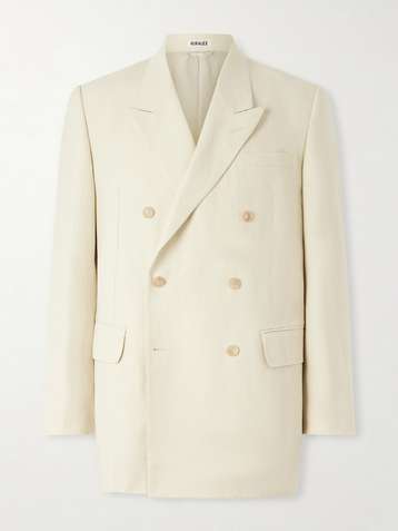 Double-Breasted Wool, Cotton And Linen-Blend Oxford Blazer