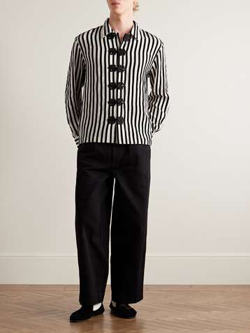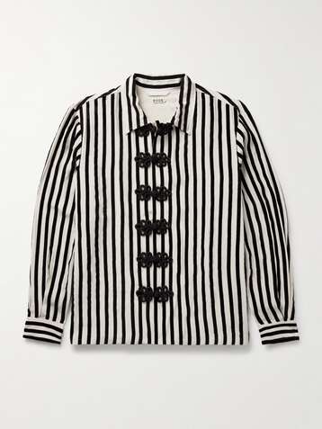Bannister Appliquéd Velvet-Trimmed Striped Silk Shirt