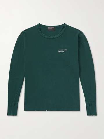 Logo-Print Distressed Textured-Cotton T-Shirt