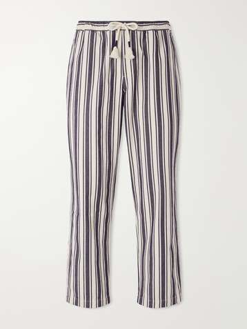 Pantaloni a gamba dritta cropped in tela di cotone a righe con coulisse Sonoran