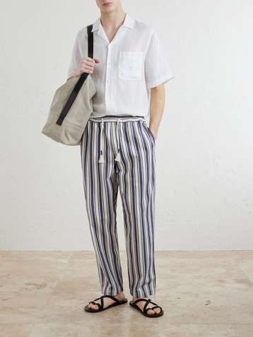 Pantaloni a gamba affusolata in misto cotone seersucker a righe con coulisse Alex