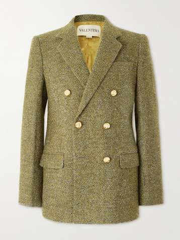 Blazer doppiopetto in lana grain de poudre con finiture in raso di seta
