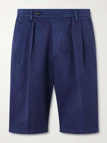 Bermuda a gamba dritta in cotone a spina di pesce con pinces Cliff