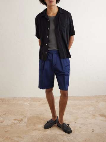 Bermuda a gamba larga in misto cotone e lino con pinces
