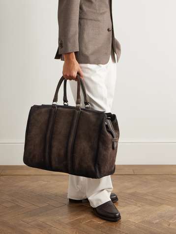 Borsa da viaggio in camoscio con finiture in pelle