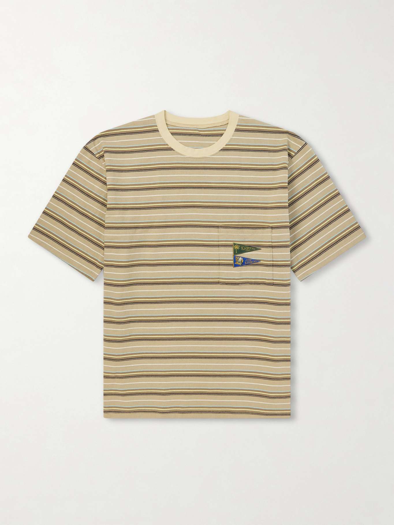 KAPITAL T-shirt in jersey di cotone a righe con logo applicato