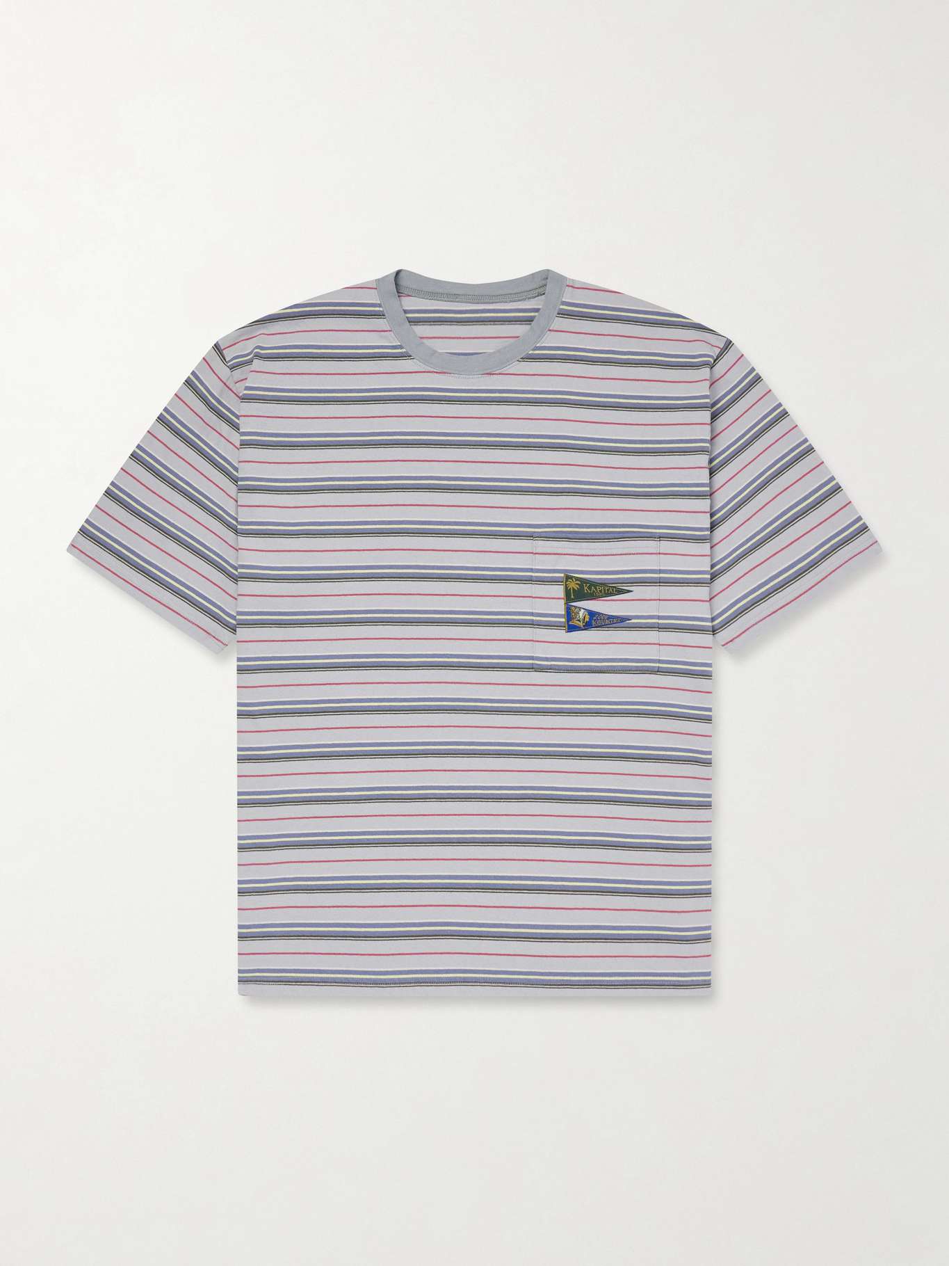 KAPITAL T-shirt in jersey di cotone a righe con logo applicato