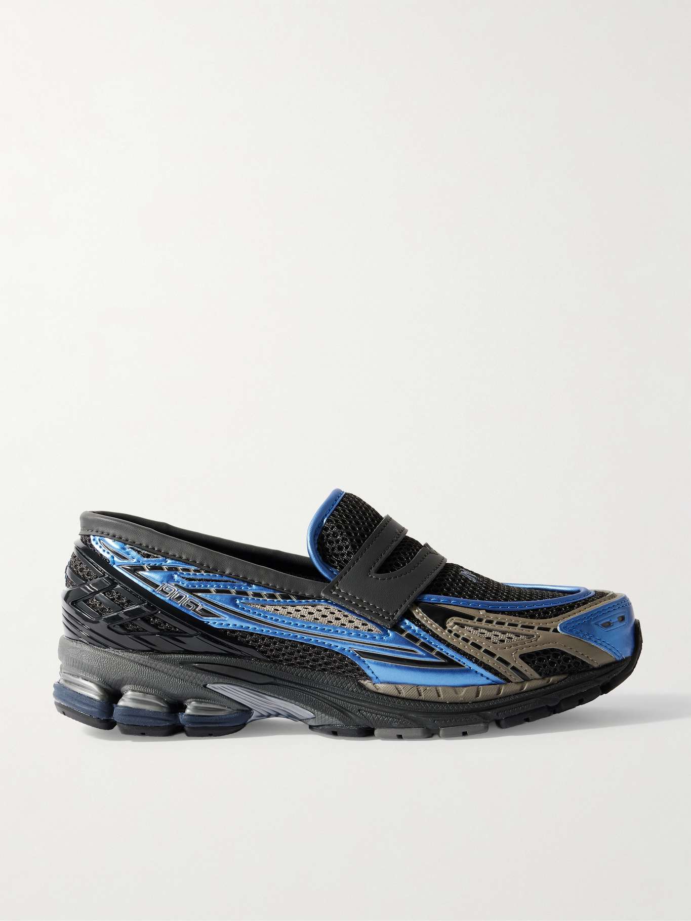- Mesh nero e grigio, materiale sintetico blu elettrico e color tortora