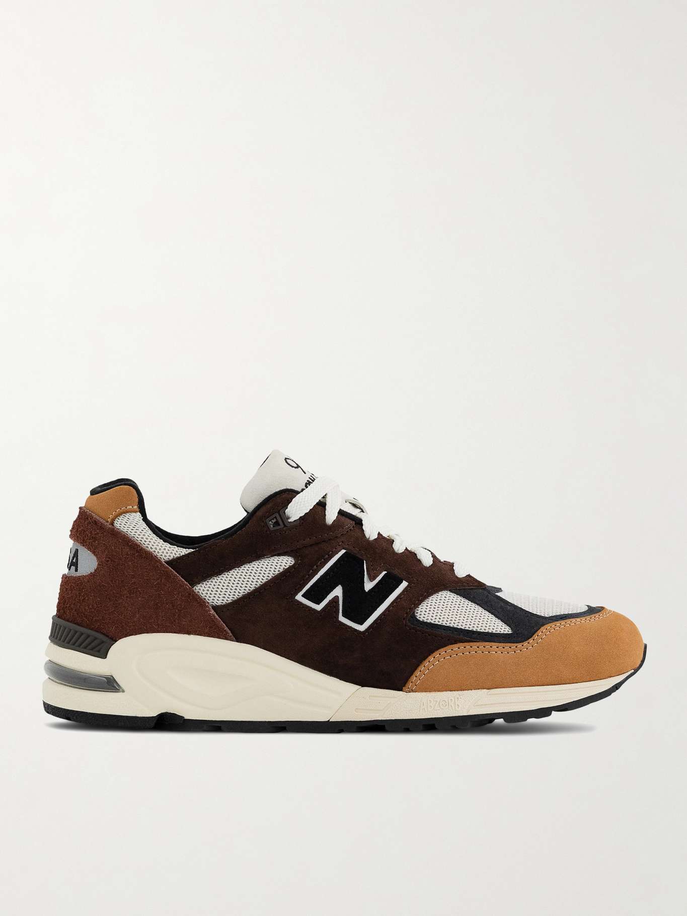- Pelle scamosciata marrone, marrone chiaro e nera, mesh bianco, pelle grigia, bianca e nera