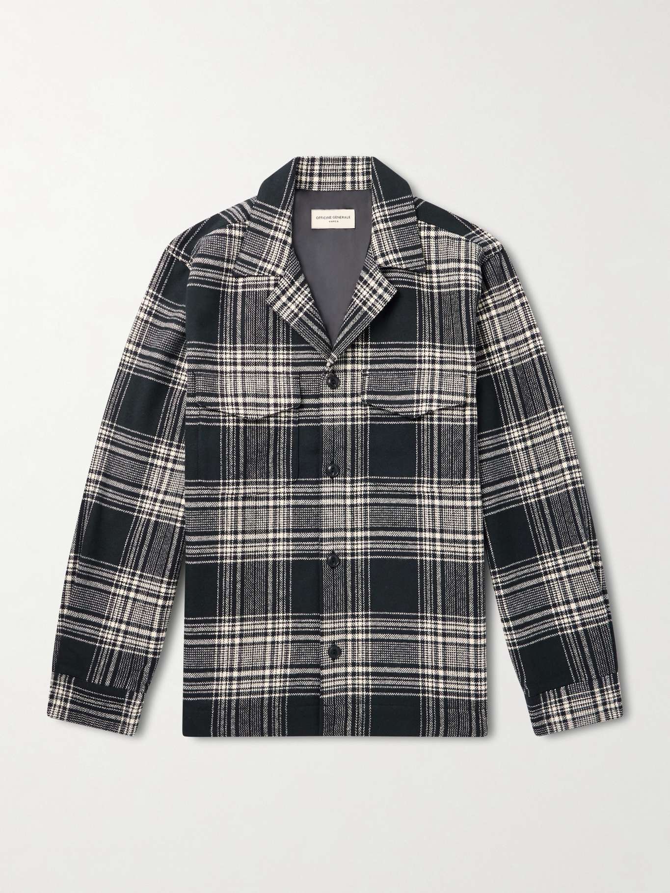 OFFICINE GÉNÉRALE Overshirt in flanella di cotone a quadri con colletto aperto Judas
