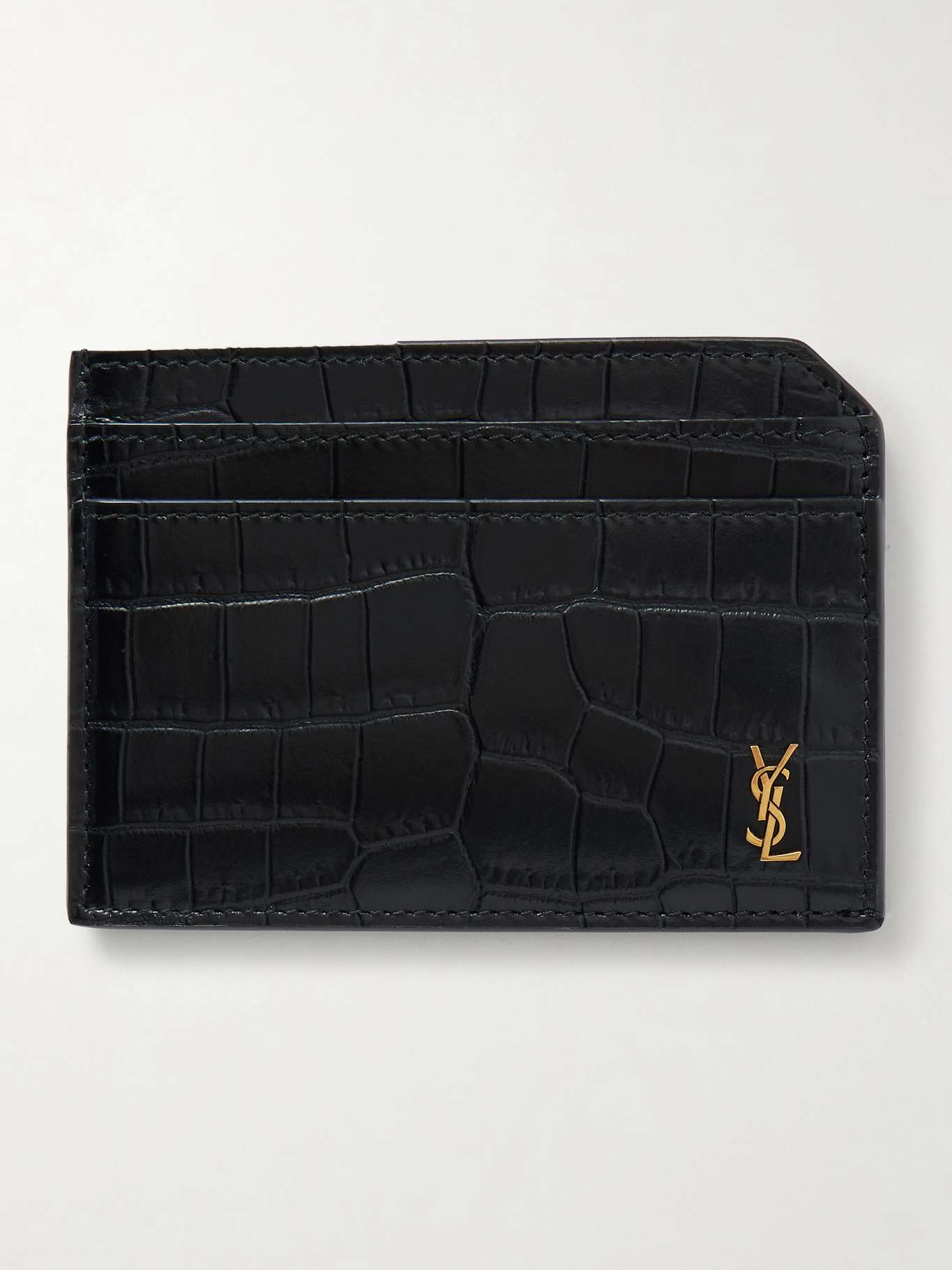 SAINT LAURENT Portacarte in vernice effetto coccodrillo con logo applicato Tiny Cassandre
